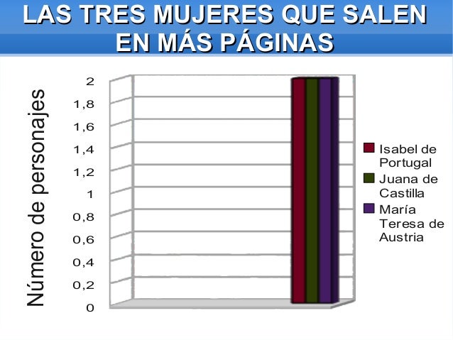 16. 16. LAS TRES MUJERES QUE SALENLAS TRES MUJERES QUE SALENEN MÁS PÁGINASEN MÁS PÁGINAS00,20,40,60,811,21,41,61,82Isabel dePortugalJuana deCastillaMaríaTeresa deAustriaNúmerodepersonajes
