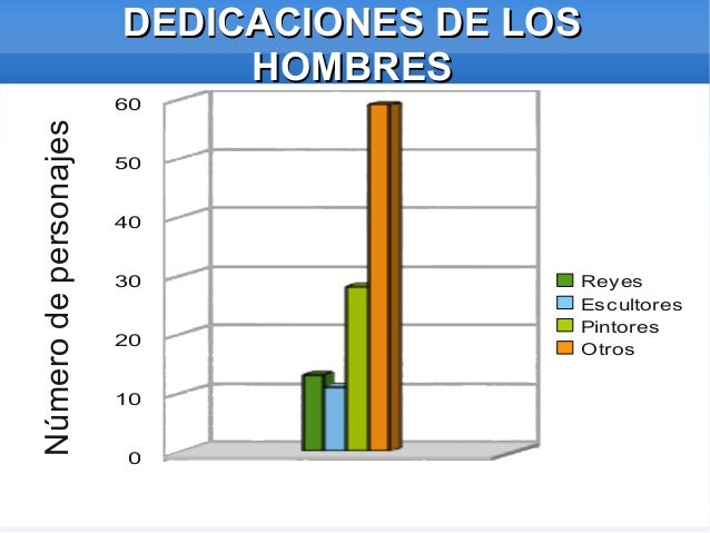 19. 19. DEDICACIONES DE LOSDEDICACIONES DE LOSHOMBRESHOMBRES0102030405060ReyesEscultoresPintoresOtrosNúmerodepersonajes