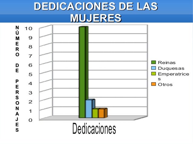 7. 7. DEDICACIONES DE LASDEDICACIONES DE LASMUJERESMUJERESReinasDuquesasEmperatricesOtros012345678910DedicacionesNNÚÚMMEERROODDEEPPEERRSSOONNAAJJEESS