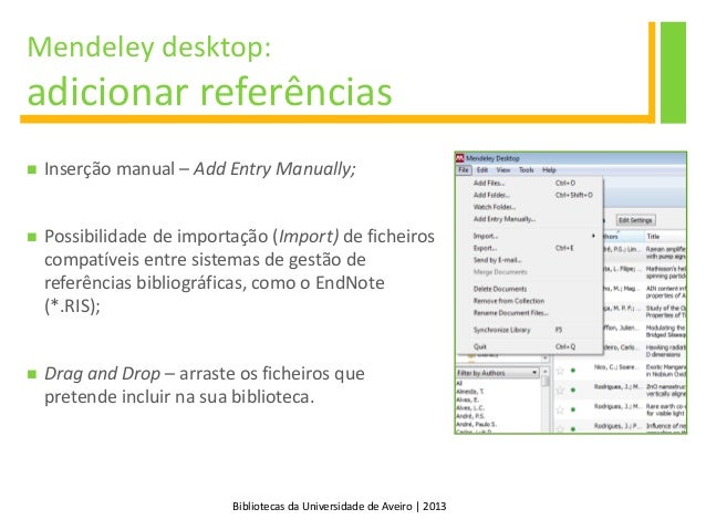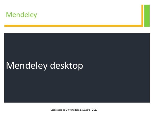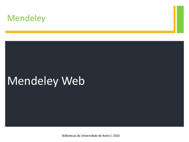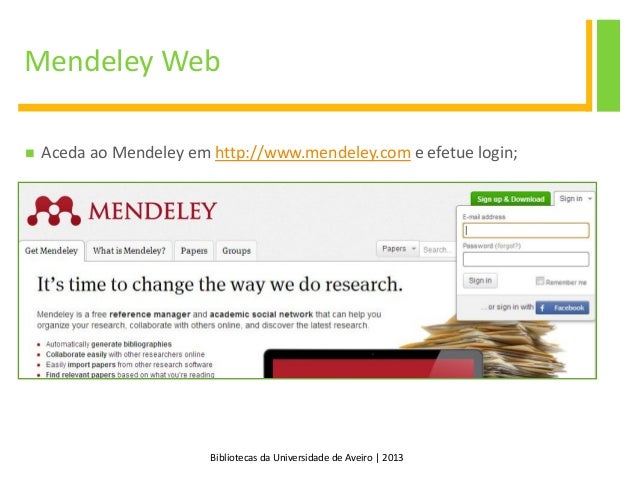 1. 1. Gestão de Referências Bibliográficas Mendeley biblioteca da universidade de aveiro | 2013