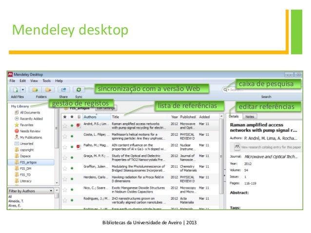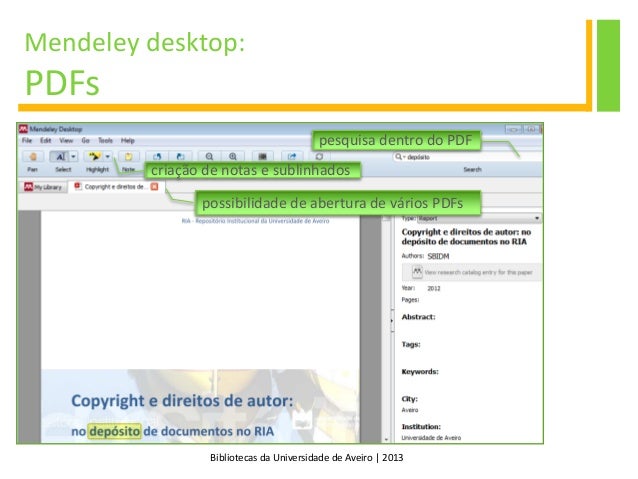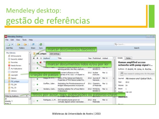 10. 10. Bibliotecas da Universidade de Aveiro | 2013 Mendeley Mendeley desktop