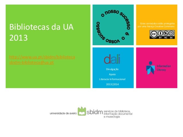 30. 30. Bibliotecas da UA 2013 http://www.ua.pt/sbidm/biblioteca sbidm-biblioteca@ua.pt Estes conteúdos estão protegidos por uma licença Creative Commons: Divulgação Apoio Literacia Informacional 2013|2014