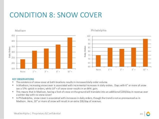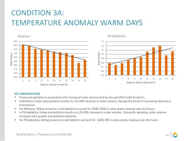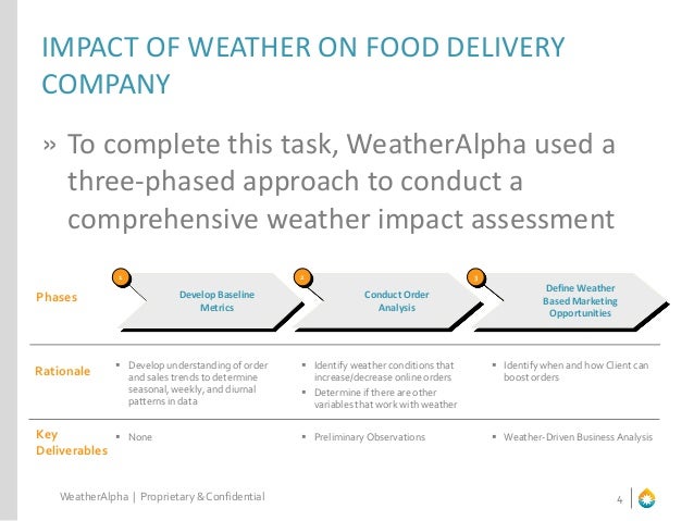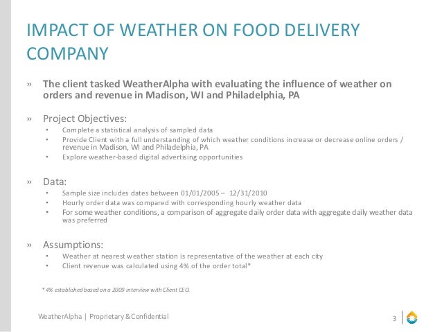 This is an example of a Weather Impact Assessment performed for a national food ordering company by WeatherAlpha, the leading provider of business weather evaluations, which turn your data into instantly actionable intelligence.
