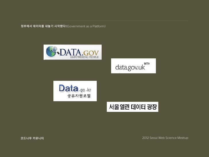 13. 13. 정부에서 데이터를 내놓기 시작했다!(Government as a Platform)코드나무 커뮤니티 2012 Seoul Web Science Meetup