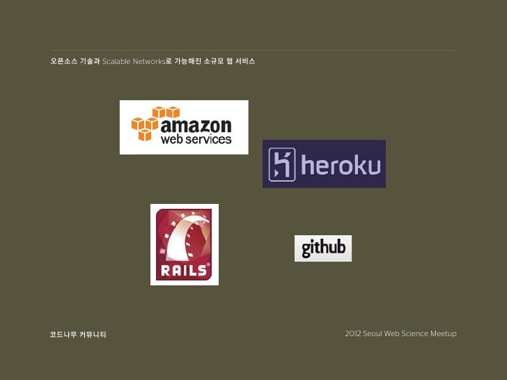 14. 14. 오픈소스 기술과 Scalable Networks로 가능해진 소규모 웹 서비스코드나무 커뮤니티 2012 Seoul Web Science Meetup