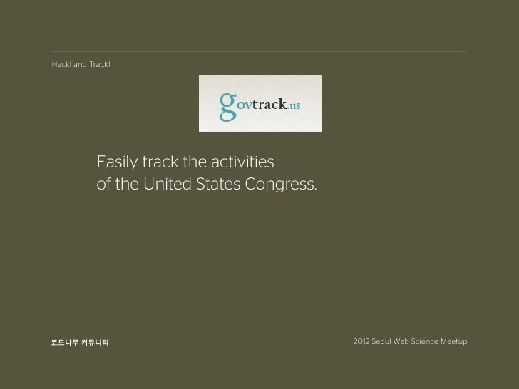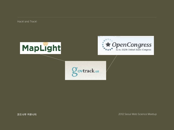 21. 21. Hack! and Track! Easily track the activities of the United States Congress.코드나무 커뮤니티 2012 Seoul Web Science Meetup