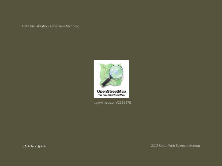 24. 24. Data Visualization, Especially Mapping http://vimeo.com/2598878코드나무 커뮤니티 2012 Seoul Web Science Meetup