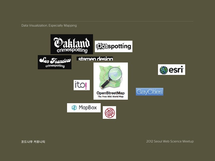 23. 23. Data Visualization, Especially Mapping Data Visualization (Especially Mapping)코드나무 커뮤니티 2012 Seoul Web Science Meetup