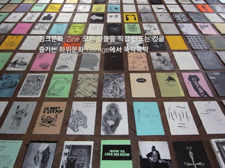 5. 5. 펑크문화, Zine. 모든 것들을 직접 만드는 것을 즐기는 하위문화. Garage에서 뚝딱뚝딱.코드나무 커뮤니티 2012 Seoul Web Science Meetup
