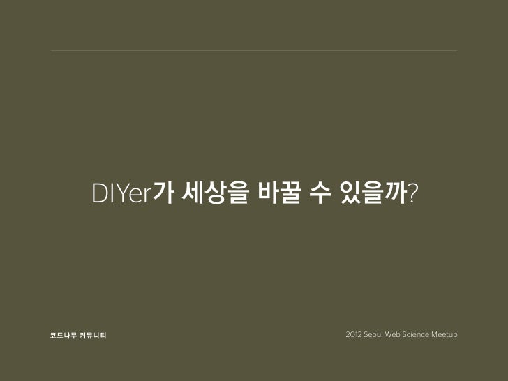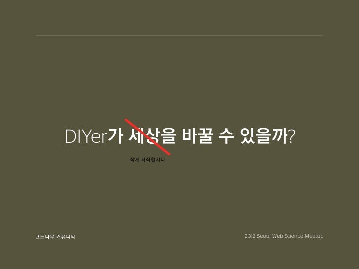 9. 9. DIYer가 세상을 바꿀 수 있을까? 작게 시작합시다코드나무 커뮤니티 2012 Seoul Web Science Meetup