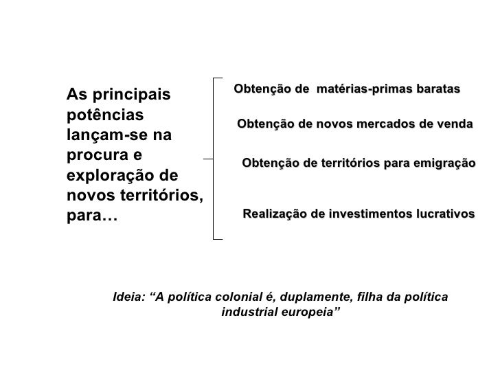 - Metrópoles Europeias Colónias Na África e na Ásia Ocupação Efectiva Investimento de Capitais Matérias - Primas a baixo p...