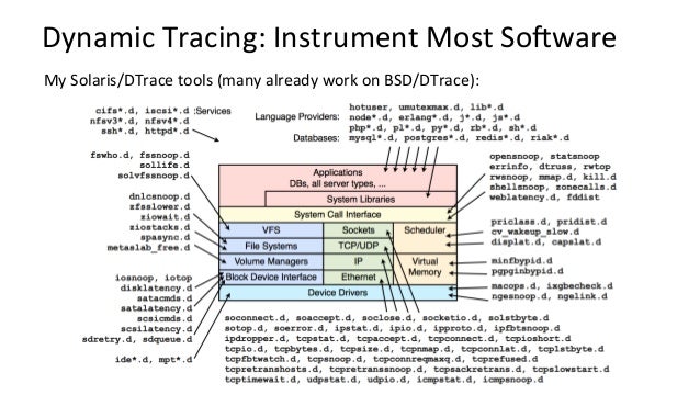 keynote by Brendan Gregg. "Traditional performance monitoring makes do with vendor-supplied metrics, often involving interpretation and inference, and with numerous blind spots. Much in the field of systems performance is still living in the past: documentation, procedures, and analysis GUIs built upon the same old metrics. Modern BSD has advanced tracers and PMC tools, providing virtually endless metrics to aid performance analysis. It's time we really used them, but the problem becomes which metrics to use, and how to navigate them quickly to locate the root cause of problems.
