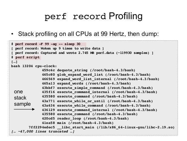 # perf script -f comm,pid,tid,cpu,time,event,ip,sym,dso > out.stacks