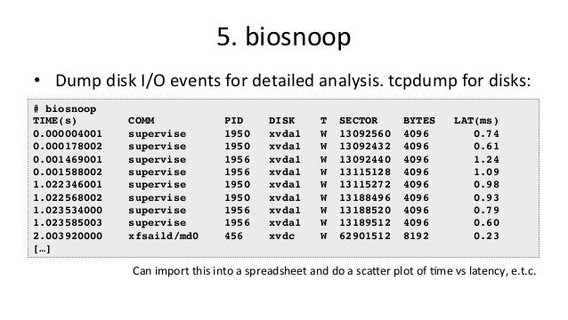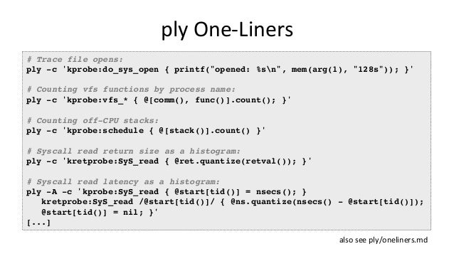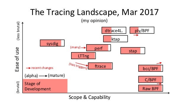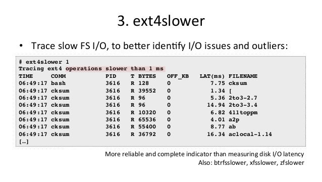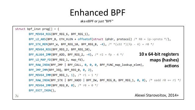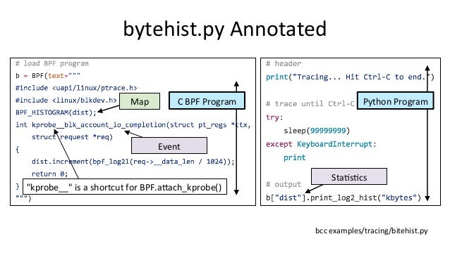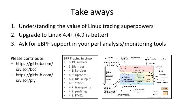 Talk about bcc/eBPF for SCALE15x (2017) by Brendan Gregg. "BPF (Berkeley Packet Filter) has been enhanced in the Linux 4.x series and now powers a large collection of performance analysis and observability tools ready for you to use, included in the bcc (BPF Complier Collection) open source project. BPF nowadays can do system tracing, software defined networks, and kernel fast path: much more than just filtering packets! This talk will focus on the bcc/BPF tools for performance analysis, which make use of other built in Linux capabilities: dynamic tracing (kprobes and uprobes) and static tracing (tracepoints and USDT). There are now bcc tools for measuring latency distributions for file system I/O and run queue latency, printing details of storage device I/O and TCP retransmits, investigating blocked stack traces and memory leaks, and a whole lot more. These lead to performance wins large and small, especially when instrumenting areas that previously had zero visibility. Tracing superpowers have finally arrived, built in to Linux."