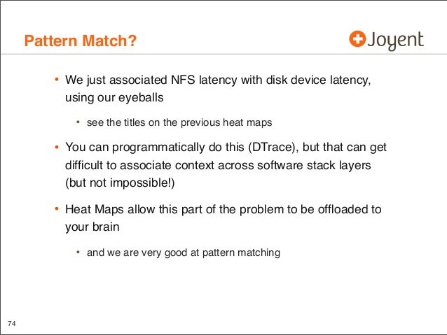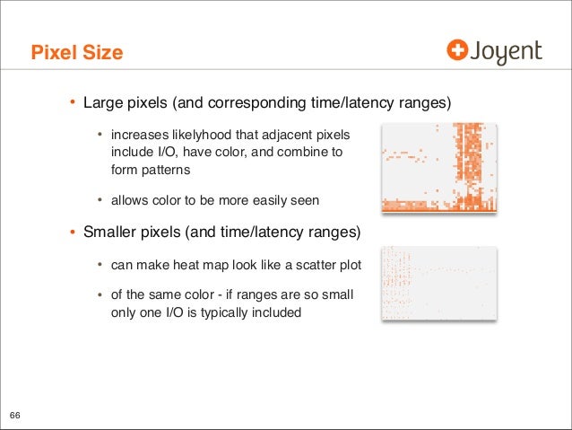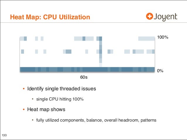 Visualizations that include heat maps can be an effective way to present performance data: I/O latency, resource utilization, and more. Patterns can emerge that would be difficult to notice from columns of numbers or line graphs, which are revealing previously unknown behavior. These visualizations are used in a product as a replacement for traditional metrics such as %CPU and are allowing end users to identify more issues much more easily (and some issues are becoming nearly impossible to identify with tools such as vmstat(1)). This talk covers what has been learned, crazy heat map discoveries, and thoughts for future applications beyond performance analysis.