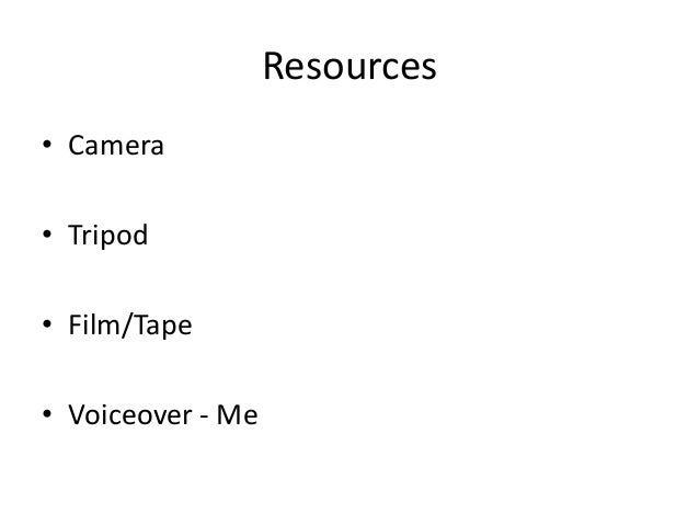 3. 3. Resources • Camera • Tripod • Film/Tape • Voiceover - Me