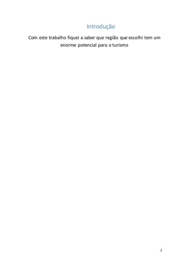 2. 2. 2 Introdução Com este trabalho fiquei a saber que região que escolhi tem um enorme potencial para o turismo