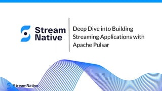 ApacheCon2022_Deep Dive into Building Streaming Applications with Apache Pulsar In this session I will get you started with real-time cloud native streaming programming with Java, Golang, Python and Apache NiFi. If there’s a preferred language that the attendees pick, we will focus only on that one. I will start off with an introduction to Apache Pulsar and setting up your first easy standalone cluster in docker. We will then go into terms and architecture so you have an idea of what is going on with your events. I will then show you how to produce and consume messages to and from Pulsar topics. As well as using some of the command line and REST interfaces to monitor, manage and do CRUD on things like tenants, namespaces and topics. We will discuss Functions, Sinks, Sources, Pulsar SQL, Flink SQL and Spark SQL interfaces. We also discuss why you may want to add protocols such as MoP (MQTT), AoP (AMQP/RabbitMQ) or KoP (Kafka) to your cluster. We will also look at WebSockets as a producer and consumer. I will demonstrate a simple web page that sends and receives Pulsar messages with basic JavaScript. After this session you will be able to build simple real-time streaming and messaging applications with your chosen language or tool of your choice. apache pulsar tim spann developer advocate streamnative datainmotion.dev