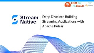 CODEONTHEBEACH_Streaming Applications with Apache Pulsar https://www.codeonthebeach.com/schedule Deep Dive into Building Streaming Applications with Apache Pulsar - Timothy Spann In this session I will get you started with real-time cloud native streaming programming with Java, Golang, Python and Apache NiFi. I will start off with an introduction to Apache Pulsar and setting up your first easy standalone cluster in docker. We will then go into terms and architecture so you have an idea of what is going on with your events. I will then show you how to produce and consume messages to and from Pulsar topics. As well as using some of the command line and REST interfaces to monitor, manage and do CRUD on things like tenants, namespaces and topics. We will discuss Functions, Sinks, Sources, Pulsar SQL, Flink SQL and Spark SQL interfaces. We also discuss why you may want to add protocols such as MoP (MQTT), AoP (AMQP/RabbitMQ) or KoP (Kafka) to your cluster. We will also look at WebSockets as a producer and consumer. I will demonstrate a simple web page that sends and receives Pulsar messages with basic JavaScript. After this session you will be able to build simple real-time streaming and messaging applications with your chosen language or tool of your choice.