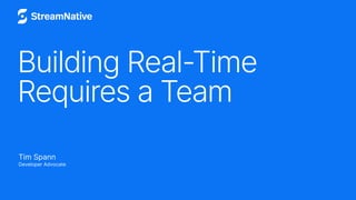 NYC Dec 2022 Meetup_ Building Real-Time Requires a Team https://www.meetup.com/new-york-city-apache-pulsar-meetup/events/289817171/ We are excited to invite you to an in-person meetup, that is all about streaming data! If you are interested in Apache Pinot, Apache Pulsar, Apache Flink, and Apache NiFi, this event is for you! AGENDA 6:00 - 6:30 PM EST: Food, Drink, and Networking!!! 7:15 - 8:00 PM EST: Introduction to Real-Time Analytics with Apache Pinot: David G. Simmons @ StarTree 7:15 - 8:00 PM EST: Building Real-Time Requires a Team: Tim Spann, Developer Advocate @ StreamNative 8:00 - 8:30 PM EST: Round Table 8:30 - 9:00 PM EST: Q&A + Networking ---- “Building Real-Time Requires a Team”- Tim Spann, Developer Advocate @ StreamNative This talk will discuss building real-time streaming applications utilizing the best open-source systems. This FLiPPN Stack consisting of Apache Flink, Apache Pulsar, Apache Pinot, and Apache NiFi supercharges any real-time app or pipeline building. I will walk you through the what, why, how, and where to use these amazing tools. We will walk through some demos and dive into the source. At the end, we will have driven real-time events into Apache Pinot, setting the stage for your real-time user-facing insights. Tim Spann is a Developer Advocate for StreamNative. He works with StreamNative Cloud, Apache Pulsar™, Apache Flink®, Flink® SQL, Big Data, the IoT, machine learning, and deep learning. Tim has over a decade of experience with the IoT, big data, distributed computing, messaging, streaming technologies, and Java programming. Previously, he was a Principal DataFlow Field Engineer at Cloudera, a Senior Solutions Engineer at Hortonworks, a Senior Solutions Architect at AirisData, a Senior Field Engineer at Pivotal, and a Team Leader at HPE. He blogs for DZone, where he is the Big Data Zone leader, and runs a popular meetup in Princeton on Big Data, Cloud, IoT, deep learning, streaming, NiFi, the blockchain, and Spark. Tim is a frequent speaker at conferences such as ApacheCon, DeveloperWeek, Pulsar Summit, and many more. Pronouns: He, They https://github.com/tspannhw/SpeakerProfile “Introduction to Real-Time Analytics with Apache Pinot" - David G. Simmons, Head of Developer Advocacy @ StarTree https://notist.davidgs.com/ https://notist.davidgs.com/ We will simulcast: https://streamnative.zoom.us/meeting/register/tZcpf-iurTojHtTJjwhi87e_iKJJYhrONpAG