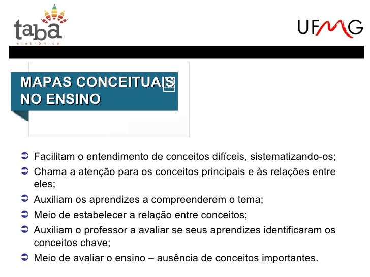 11. 11. MAPAS CONCEITUAISNO ENSINO Facilitam o entendimento de conceitos difíceis, sistematizando-os; Chama a atenção para os conceitos principais e às relações entre eles; Auxiliam os aprendizes a compreenderem o tema; Meio de estabelecer a relação entre conceitos; Auxiliam o professor a avaliar se seus aprendizes identificaram os conceitos chave; Meio de avaliar o ensino – ausência de conceitos importantes.