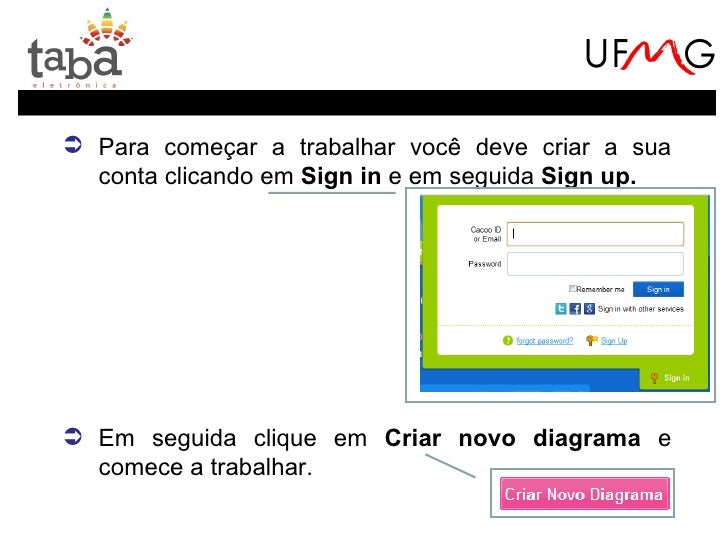23. 23.  Para começar a trabalhar você deve criar a sua conta clicando em Sign in e em seguida Sign up. Em seguida clique em Criar novo diagrama e comece a trabalhar.