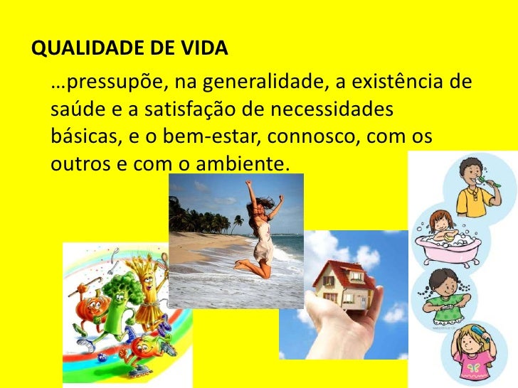 QUALIDADE DE VIDA<br />	…pressupõe, na generalidade, a existência de saúde e a satisfação de necessidades básicas, e o bem...