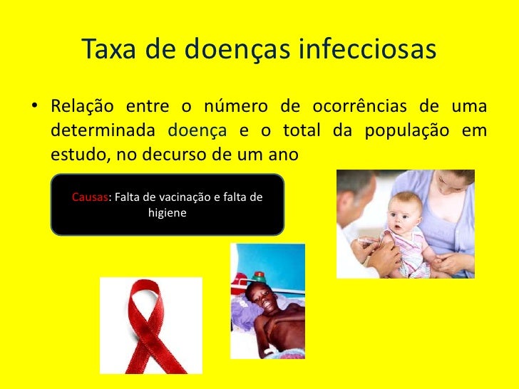 Taxa de doenças infecciosas<br />Relação entre o número de ocorrências de uma determinada doença e o total da população em...