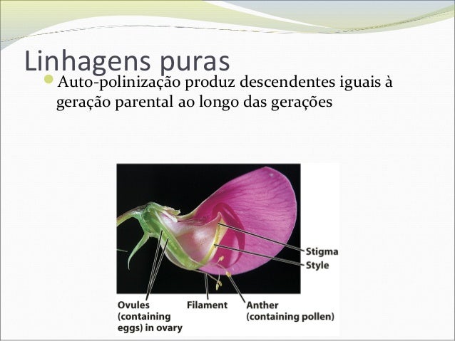13. 13. Linhagens puras Auto-polinização produz descendentes iguais à  geração parental ao longo das gerações