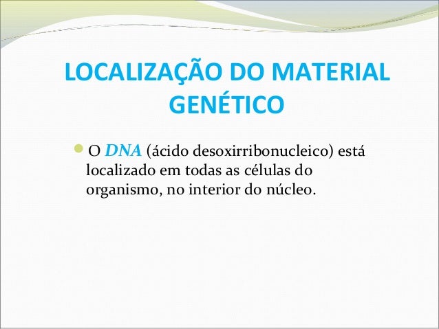 2. 2. LOCALIZAÇÃO DO MATERIAL GENÉTICOO DNA (ácido desoxirribonucleico) está localizado em todas as células do organismo, no interior do núcleo.