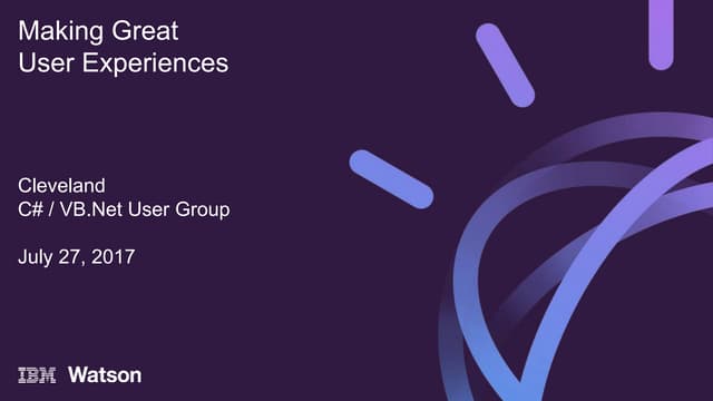 @carologic / MWUX2017 Watson is a cognitive technology that can think like a human. • Understand • Analyze and interpret all kinds of data • Unstructured text, images, audio and video • Reason • Understand the personality, tone, and emotion of content • Learn • Grow the subject matter expertise in your apps and systems • Interact • Create chat bots that can engage in dialog https://www.ibm.com/watson/