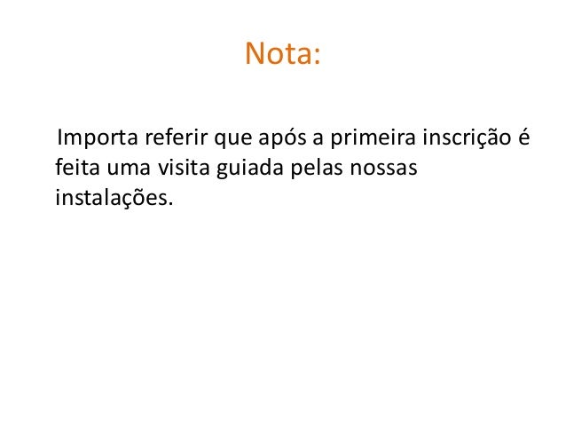 7. 7. Nota:Importa referir que após a primeira inscrição éfeita uma visita guiada pelas nossasinstalações.