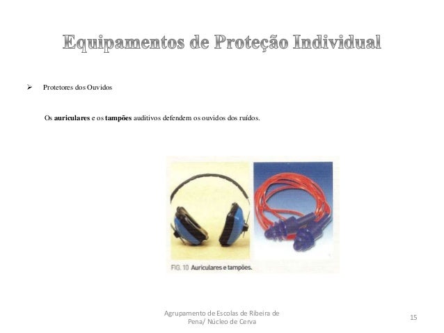 15. 15.  Protetores dos Ouvidos Os auriculares e os tampões auditivos defendem os ouvidos dos ruídos. Agrupamento de Escolas de Ribeira de 15 Pena/ Núcleo de Cerva