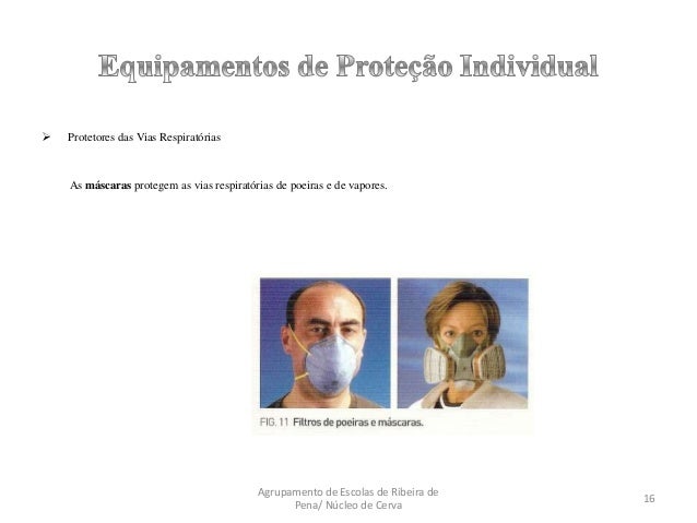 16. 16.  Protetores das Vias Respiratórias As máscaras protegem as vias respiratórias de poeiras e de vapores. Agrupamento de Escolas de Ribeira de 16 Pena/ Núcleo de Cerva