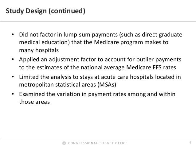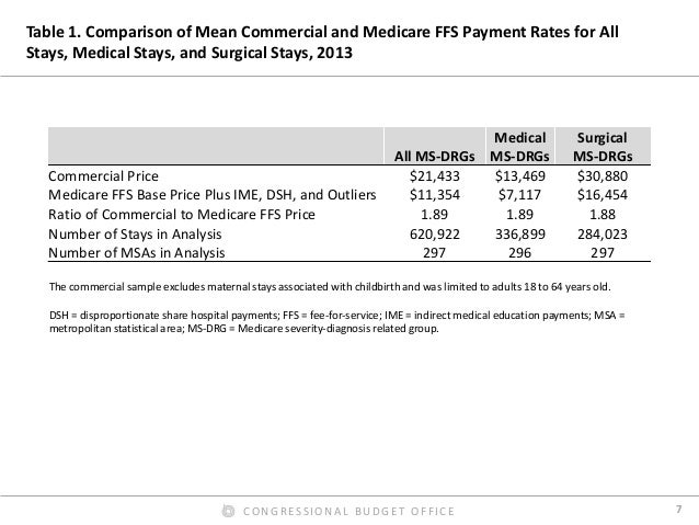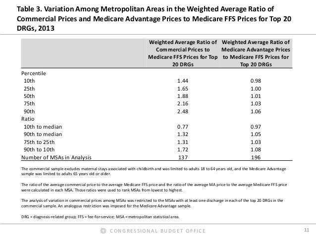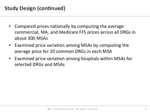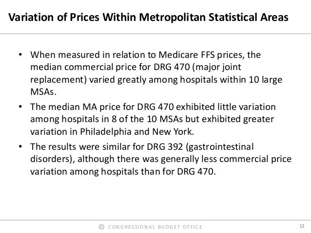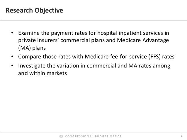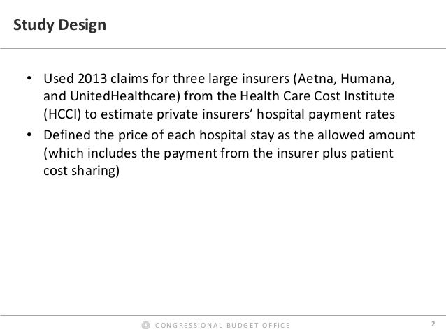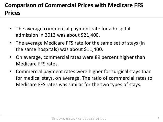 Prices for hospital admissions have received considerable attention in recent years, both because they are an important component of health care spending and because they can vary widely. In this presentation, we use 2013 claims data from three large insurers to examine the hospital payment rates of those insurers in their commercial plans and their Medicare Advantage plans and compare them with Medicare’s fee-for-service (FFS) rates; we also examine the variation of those rates across and within markets. We found that the average commercial payment rate for a hospital admission was about $21,400, but the prices for common types of admissions usually varied widely. By contrast, we found that the average payment rate in Medicare’s FFS program for the same mix of admissions and hospitals was about $11,400 (including Medicare’s additional payments for admissions to teaching hospitals and certain other supplemental payments). On average, therefore, commercial rates for inpatient services were 89 percent higher than Medicare’s FFS rates—or Medicare’s FFS rates were 47 percent lower than commercial rates, on average. The ratio of commercial rates to Medicare’s FFS rates varied greatly across metropolitan areas and across hospitals within metropolitan areas.