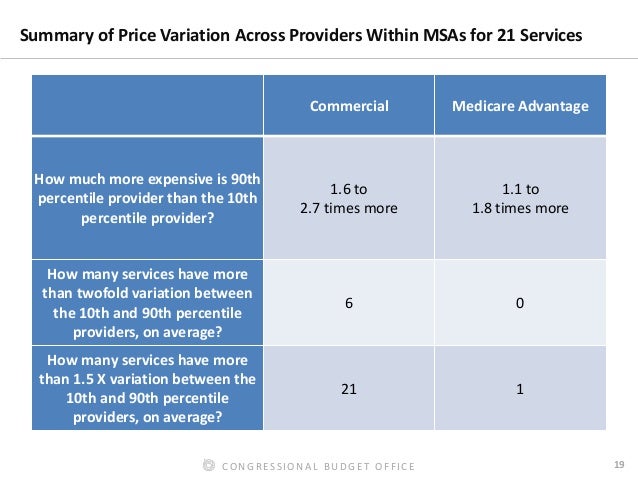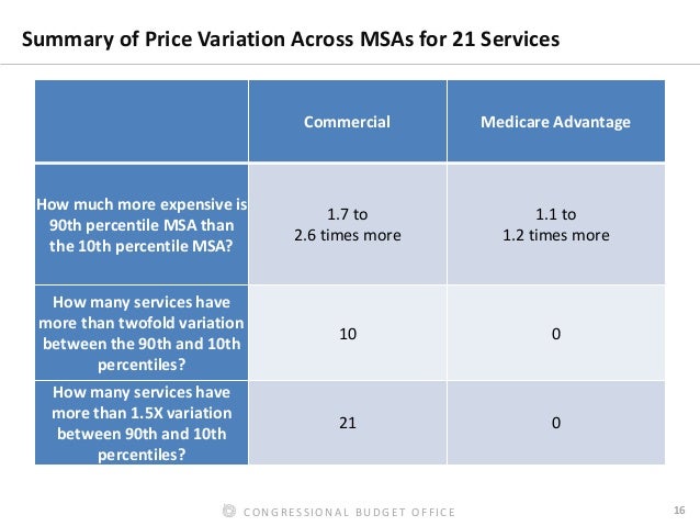 Consistent with other studies, our results showed that commercial prices were higher than Medicare FFS prices, on average, and that prices for a given service varied as much as twofold across areas and providers, even after adjusting for differences in input costs. Out-of-network prices that insurers paid in commercial plans were as much as three times their in-network prices.