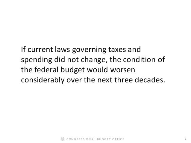 If current laws governing taxes and spending did not change, the condition of the federal budget would worsen considerably over the next three decades. Growth in federal spending would continue to outpace growth in federal revenues, leading to ever-larger budget deficits.
