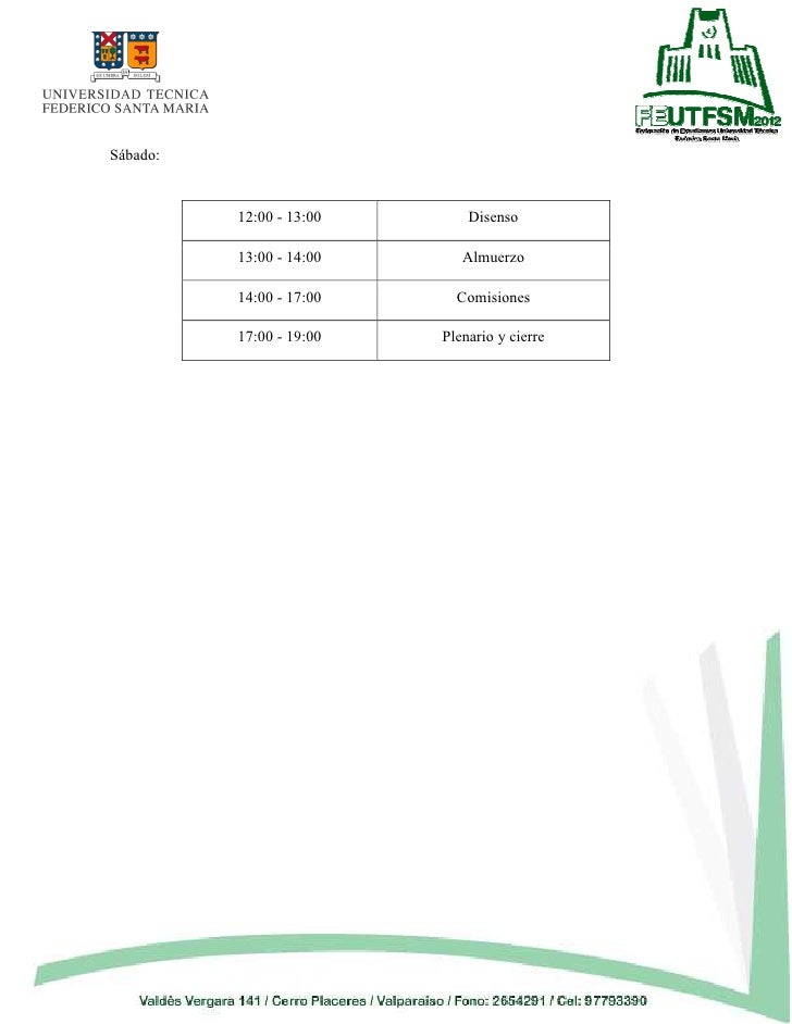 1. 1. CONGRESO DE ESTUDIANTES UTFSMMediante el presente documento es que se realiza el llamado público a la realizacióndel Congreso de estudiantes de la Universidad Técnica Federico Santa María. Siendoel Congreso la instancia de discusión estudiantil donde se definen los lineamientos a largoplazo y los temas más transcendentes, decidiendo además la postura ante temáticas de granimportancia.Como federación hacemos extensiva la invitación a participar de este importante evento.Para ser participes tienen que acercarse a su respectivo centro de alumnos que definirá lamodalidad de la elección de los congresistas. CALENDARIO CONGRESO ESTUDIANTES UTFSM ETAPA FECHAS LLAMADO A CONGRESO 14-27 de mayo ELECCIÓN DE CONGRESISTAS 28-01 mayo-junio EJECUCIÓN CONGRESO 7,8 y 9 de junio