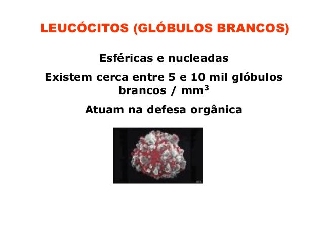 91. 91. LEUCÓCITOS (GLÓBULOS BRANCOS) Esféricas e nucleadasExistem cerca entre 5 e 10 mil glóbulos brancos / mm3 Atuam na defesa orgânica