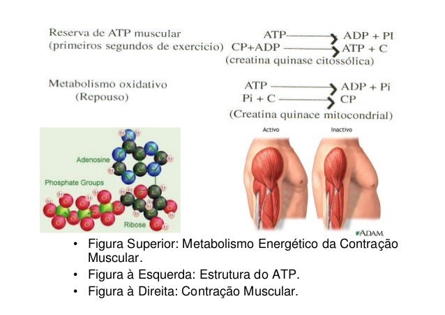 110. 110. • Figura Superior: Metabolismo Energético da Contração Muscular.• Figura à Esquerda: Estrutura do ATP.• Figura à Direita: Contração Muscular.