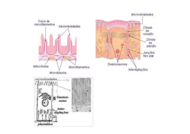 9. 9. TECIDO EPITELIAL DE REVESTIMENTO- Apresentam células pavimentosas, cilíndricas ecúbicas, com GLICOCÁLIX (Aceptores e reforços demembrana), e DESMOSSOMOS (Adesão).- Assentados sobre uma membrana basal com fibrascolágenas, elásticas e reticulares, vascularizada einervada (metabolismo do epitélio).-É avascularizado, com MICROVILOSIDADES deabsorção de nutrientes presentes nas célulasintestinais, CÍLIOS de varrição na traquéia e tubasuterinas e ESTEREOCÍLIOS nos túbulosseminíferos.