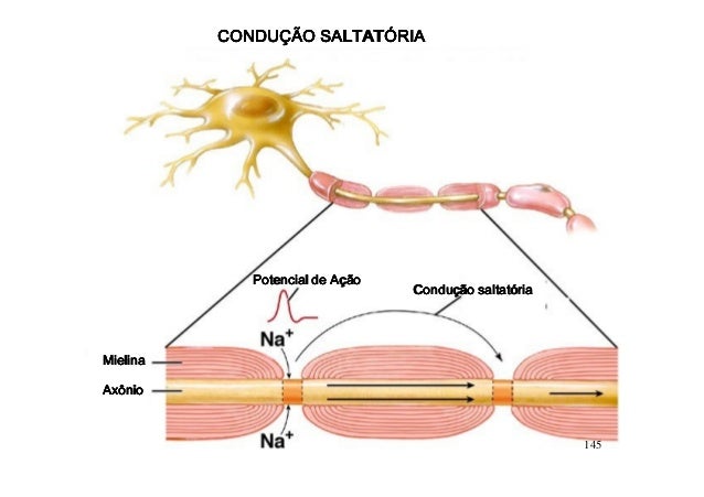 124. 124. CONDUÇÃO SALTATÓRIA Potencial de Ação Condução saltatóriaMielinaAxônio 145