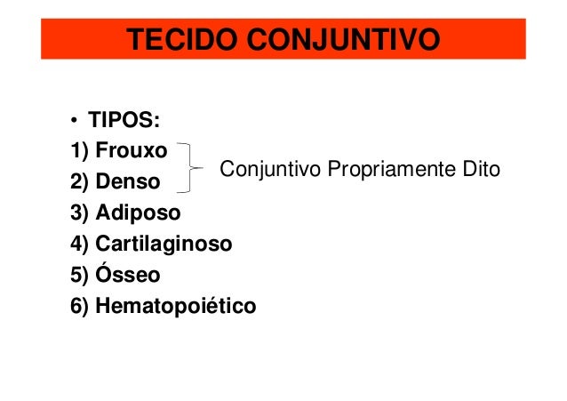 32. 32. TECIDO CONJUNTIVO• TIPOS:1) Frouxo Conjuntivo Propriamente Dito2) Denso3) Adiposo4) Cartilaginoso5) Ósseo6) Hematopoiético