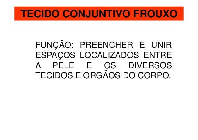 33. 33. TECIDO CONJUNTIVO FROUXO FUNÇÃO: PREENCHER E UNIR ESPAÇOS LOCALIZADOS ENTRE A PELE E OS DIVERSOS TECIDOS E ORGÃOS DO CORPO.