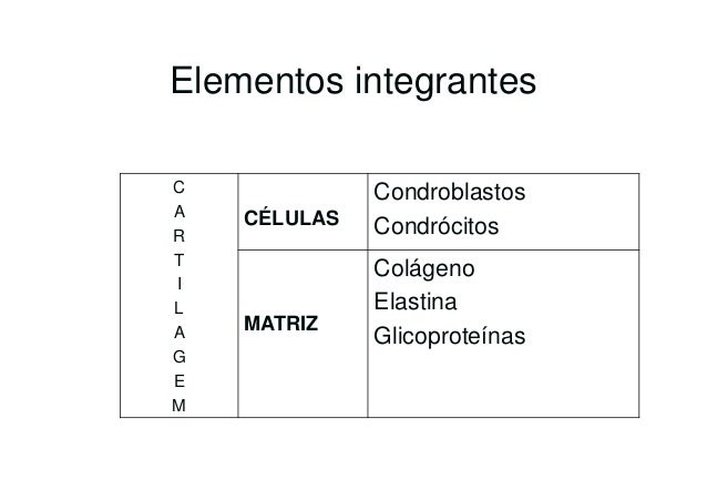 49. 49. Elementos integrantesC CondroblastosA CÉLULASR CondrócitosT ColágenoIL Elastina MATRIZA GlicoproteínasGEM