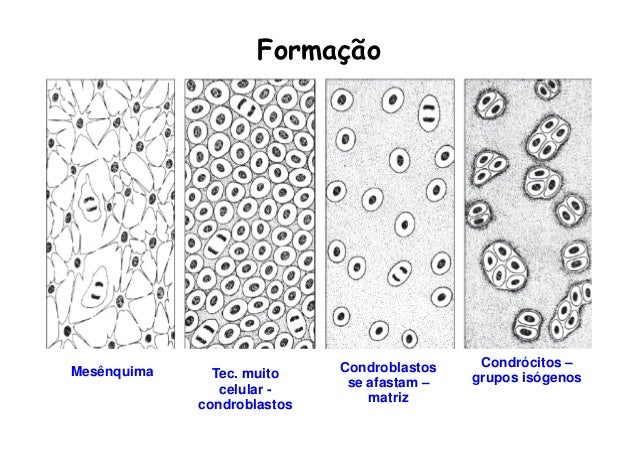 53. 53. Formação Condroblastos Condrócitos –Mesênquima Tec. muito grupos isógenos celular - se afastam – condroblastos matriz