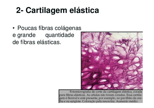 58. 58. 2- Cartilagem elástica• Poucas fíbras colágenase grande quantidadede fíbras elásticas.