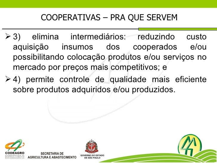 Cooperativa Agropecuarias, e associações com produtores rurais