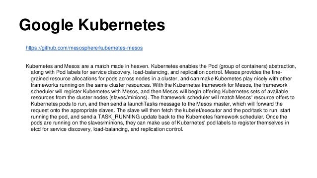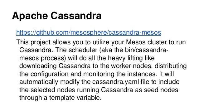 Apache Mesos is a cluster manager that simplifies the complexity of running applications on a shared pool of servers.