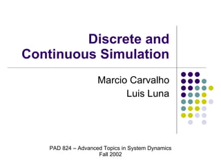 Simulation Marcio Carvalho Luis Luna PAD 824 – Advanced Topics in System Dynamics Fall 2002